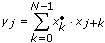 xj = 0, j < 0 또는 j ≥ N이 후 [자기 상관] VI는 다음 수식을 사용하여 Y의 원소를 얻습니다.