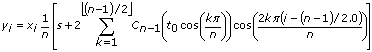 Y가 출력 시퀀스 윈도우된 X를 나타내는 경우, [체비셰프 윈도우] VI는 다음 수식을 사용하여 Y의 원소를 얻습니다: