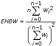 주어진 윈도우의 응집 이득(CG: coherent gain)과 등가 노이즈 대역폭(ENBW: equivalent noise bandwidth)은 다음과 같이 정의됩니다: