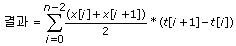 사다리꼴 방법을 사용하여 입력 배열이 균등하지 않은 간격의 값에 대해 수치 적분을 수행합니다.