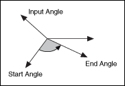 다음 그림은 입력각이 시작각부터 끝각까지 범위 안에 있는 예를 보여줍니다.