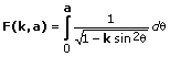이때 k는 편심(elliptic modulus)의 제곱이고 a는 적분의 상위 리미트, 즉 진폭입니다.