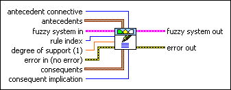 퍼지 시스템 입력은 퍼지 시스템에 대한 전체 정보를 지정합니다. 이 VI의 퍼지 시스템 입력 입력을 다른 VI의 퍼지 시스템 출력 출력에 연결합니다. | ||||||||