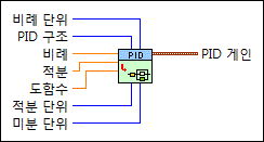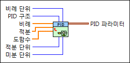 PID 게인은 업데이트된 PID 게인 파라미터를 반환하며, 이 파라미터는 다른 PID VI와 함게 사용할 수 있습니다.
