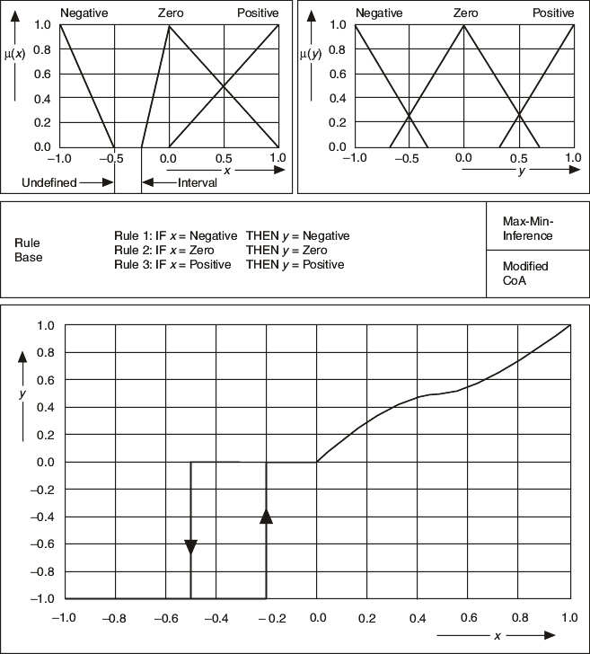 이전 출력값을 기본값으로 사용하는 경우, 정의되지 않은 간격 또는 불완전한 규칙 기반은 컨트롤러 특성에 히스테리시스의 영향을 줄 수 있습니다.