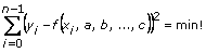 측정 세트(xi, yi)가 다음과 같은 모델 방정식으로 주어지고, 이때 i = 0, 1, …, n – 1 데이터 포인트 세트가 주어집니다.