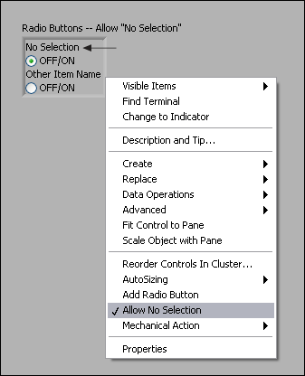单选按钮控件中的各个布尔控件必须包括唯一标签。但是,布尔控件不一定须使用唯一的标题。程序框图中标签将被作为枚举类型的值使用。在下列范例中,第二个和第三个布尔控件使用相同标签。