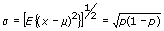 µ = E{ x}= p