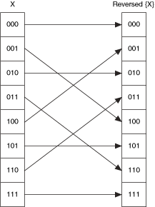 下图显示了8个二进制数的数字反序。