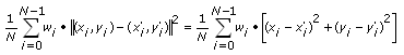 其中, N 是 Y的长度, wi 是 Weight的第 i个元素,(xi,yi)是输入序列(X, Y)的第 i对,(x'i,y'i)是(最佳BSpline Fit X, 最佳BSpline Fit Y)的第 i对,函数两边的规范符号(||)计算向量的l2 规范。B样条曲线(x'i,y'i)由标准B样条基本函数建立。
