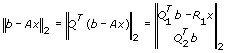 min(||b – Ax||2)由min(||Q1Tb – R1x||2)确定,通过求解R1x = Q1Tb,可得到解x。