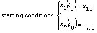 给定函数f1, …, fn、数字和起始点t = t0。通过转换F = (f1, …, fn); X(t) = (x1(t), …, xn(t)); and X0 = (x10, …, xn0),