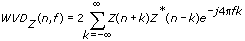 对于离散信号X,通过解析相关Z,下列方程定义了解析的Wigner-Ville分布WVDZ(n, f):