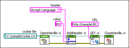 2. “添加头”VI可添加新的头属性,设置与客户端句柄相关的后续Web请求的首选语言。