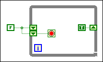 下列示意图显示了不使用计数接线端创建运行2、3和100次循环的While循环。