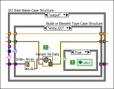 - 从I/O项名称条件结构中选择输出条件分支,从节点或元素类型条件结构中选择写入I/O条件分支。