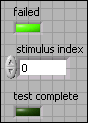- 在Test Bookkeeping VI中,添加一个32位有符号整数的激励索引输入控件。同时添加一个测试完成布尔显示控件,如下列前面板中所示: