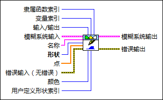 修改语言变量隶属函数的形状、颜色或点。可修改模糊系统或隶属函数数组的隶属函数。连接至模糊系统输入输入端的数据类型决定了所使用的多态实例。