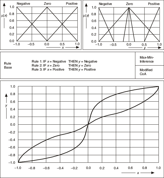 如要显著影响控制器特性,隶属函数的常规值应均匀分布,但要使用以不同的影响范围建模的输出项。各项面积不同,因此去模糊化过程的权重也不同。较宽的输出项比相邻较窄的输出项对推论结果的影响更大。下图是该效果的示例。