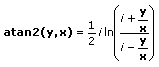 atan2(y,x)yx的反正切,以弧度为单位。atan2(y,x)的取值范围为[-pi, pi]。xy为负数,下列方程为atan2(y,x)的定义: