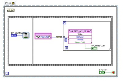 We chose the NI 9201 C Series analog input module, featuring a 500 kS/s measuring speed, and the NI CompactRIO field-programmable gate array (FPGA) platform for the new system. With this hardware, we can achieve high-speed signal solutions to make sure that the measured pressure values reflect the system condition in real time and the measured system data remains at average levels. Because the NI 9201 has eight independent channels, we do not need additional modules to measure the pressure and temperature.