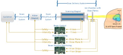 We designed the SC360 proton therapy system to provide the flexibility required to support 1 to 5 treatment rooms, allow for different treatment room configurations, meet individual customer needs, and enable easy integration with future R&D projects. This modular approach lends itself nicely to the design of a distributed control system with NI reconfigurable I/O (RIO) technology. This technology, in conjunction with the LabVIEW Real-Time Module and the LabVIEW FPGA Module, provide the hardware flexibility and programming capabilities needed to rapidly develop advanced embedded monitoring and control solutions for the SC360 without sacrificing the performance requirements of a proton therapy system. Consequently, we used CompactRIO and Single-Board RIO solutions extensively throughout the SC360 for magnet control, vacuum control, beamline diagnostics, and dose delivery. The SC360 offers a highly accurate and precise method for targeting tumors by using intensity modulated proton therapy (IMPT) with pencil beam scanning (PBS). This technology helps doctors treat large, non-contiguous targets with improved local control; thus, sparing sensitive organs and normal tissue from unnecessary radiation exposure. This allows proton therapy to provide a dosimetric advantage in more than 80 percent of all external beam radiation treatment cases.