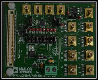 An application board is a printed circuit board containing various complementary ADI products to market one anchor device, as seen in Figure 1. Application boards have standard connectors and ports, making it easy for customers to interface them with different systems, giving customers the edge to accelerate prototyping and early product release.