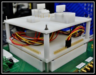 The complete generic PXI-based application board tester is shown in Figure 3. On the bottom is the 18-slot chassis, followed by the built-in controller and various modules necessary for testing the application board. On top of the chassis is the interposer board, which handles tester resource breakout. On the very top is the BON with the actual board in place. Once the correct program is loaded onto the tester, the operator only needs to insert the board and initiate the testing process. This repeats until all boards on a single product are tested.