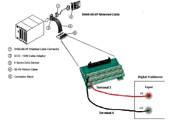 Figure 1: Connecting a DMM to the back of a SCXI module