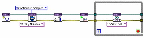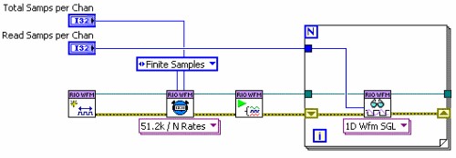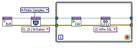 Finite Acquisition: The finite acquisition mode tells the FPGA to acquire a certain number of samples and then terminate the acquisition. In this acquisition mode, ConfigTiming.vi calls BufferConfig.vi and sets the host application's data buffer size equal to the number of points in the finite acquisition.