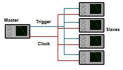 The precision versus distance graph shows that as the distance between nodes increases past a certain point, you cannot physically connect the clock and trigger lines for each node together anymore. You need another method of conveying the clock and trigger signals from the master node to the other slave nodes in the system. This method, examined later in this tutorial, is called time-referenced synchronization.