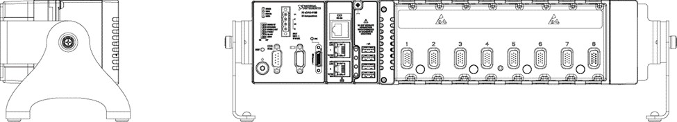 For reference, the following figure shows an NI cDAQ-9138/9 controller mounted horizontally with an NI Desktop Kit.
