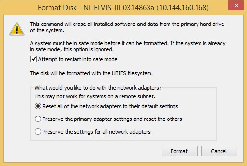 Right-click your NI ELVIS III target and then select Format Disk.
