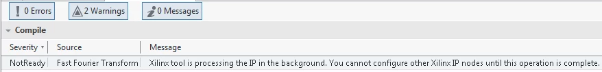 Figure 26: "Not Ready" warning because Xilinx tool is processing the IP in the background