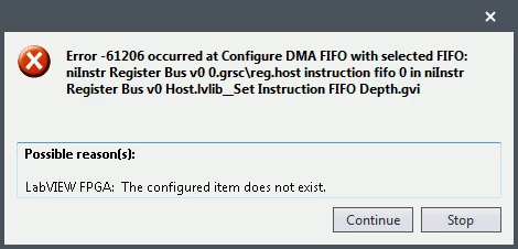 Figure 38: Error -61206 occurred because of incorrect FIFO resource name