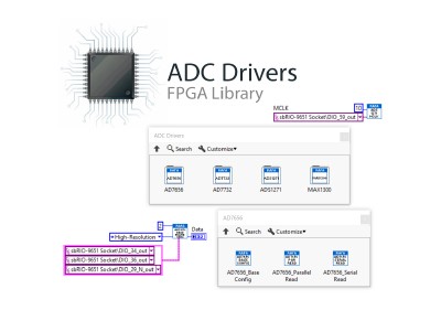 The ADC Drivers FPGA Library for LabVIEW helps you integrate A/D converters in LabVIEW applications.