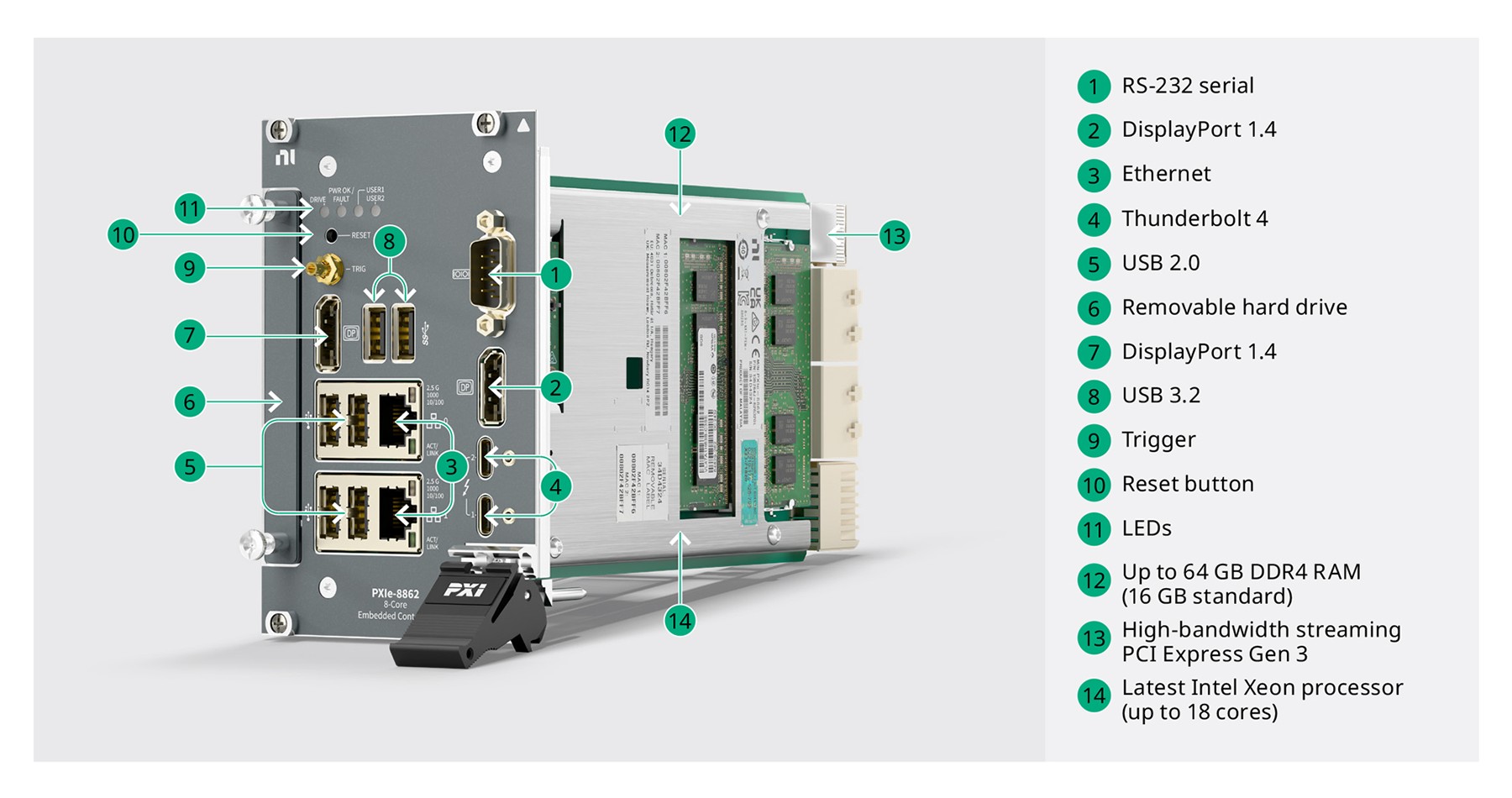 Figura 6. Diagrama detallado de PXIe-8862 con disco duro extraíble
