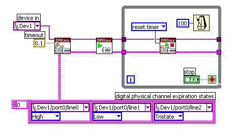 デバイスがハードウェアのコマンドに再び応答するようにするには、図10に示されるように「NI-DAQmxウォッチドッグタスクを制御」VIを使用して制限時間経過状態をクリアする必要があります。