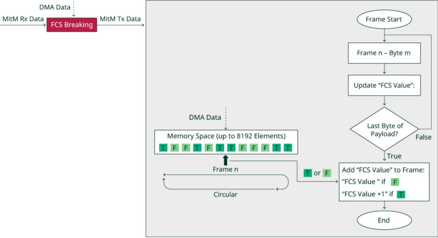 MitM은 여러 FCS 조작 모드를 지원합니다. 이러한 모드는 Wireshark®*에 로드된 PCAP 파일로 설명되며 일부 스크린 캡처는 부록 A에서 확인할 수 있습니다.