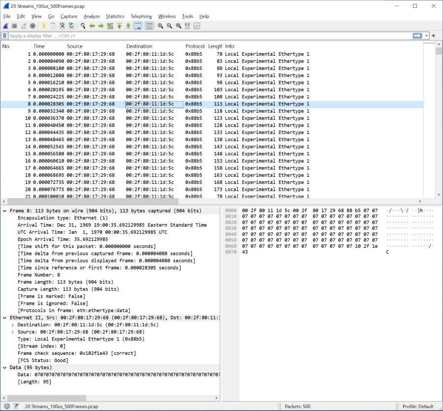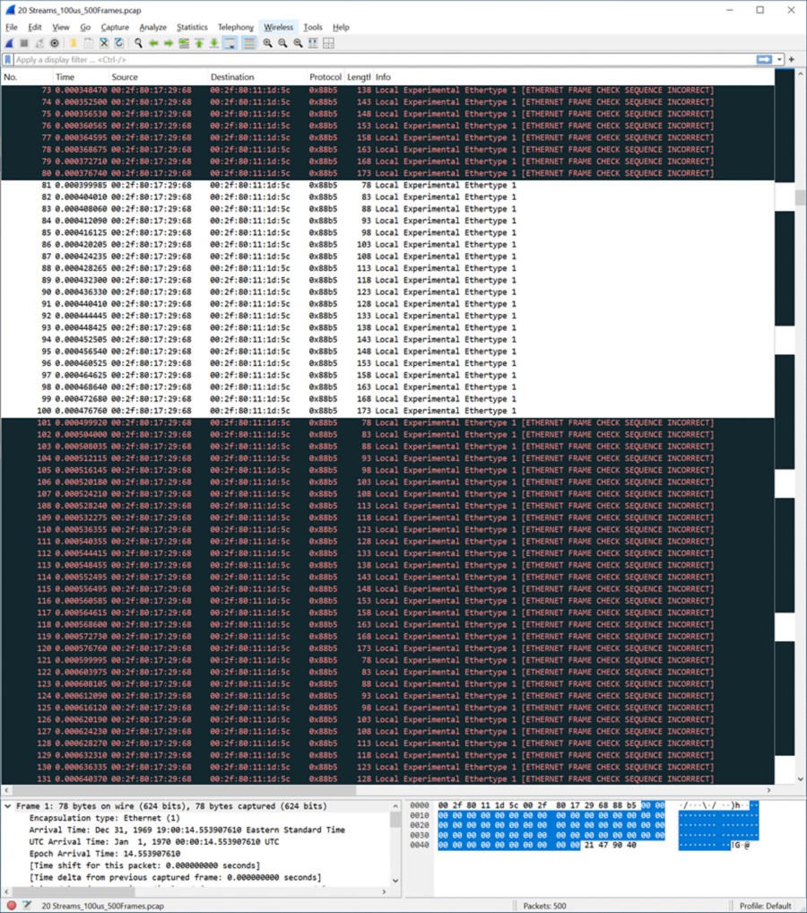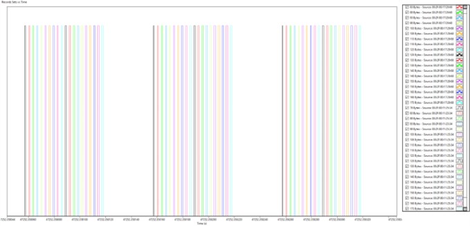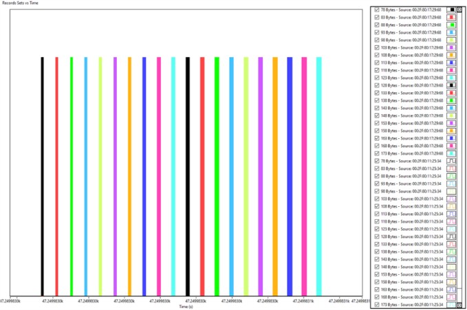 이 단계에서는 MitM Rx와 프레임 생성기의 트래픽이 모두 발생합니다. 그림 17에서는 서로 다른 트래픽 소스의 서로 다른 스트림을 볼 수 있습니다.
