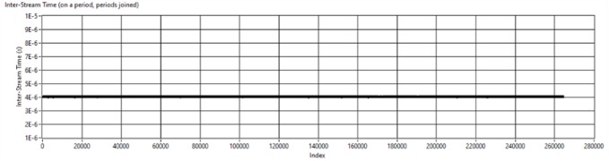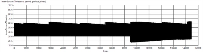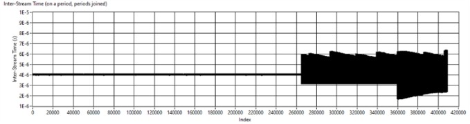 그림 16: 테스트 결과 1단계: 주기가 결합된 스트림 간 시간, 연속 스트림 사이의 ~4 μs.